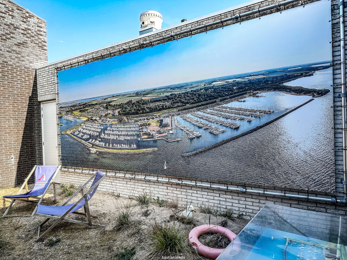 Der spezielle Blick auf den Hafen von Bruinisse mittels einer Panoramaaufnahme meiner Drohne hängt nun im offenen Bereich des Waschhauses der Marina in einer Größe von 2,50m x 5,00m.